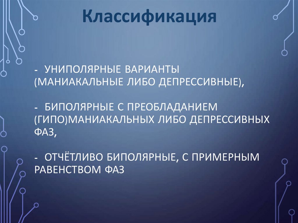 Классификация- УНИПОЛЯРНЫЕ ВАРИАНТЫ