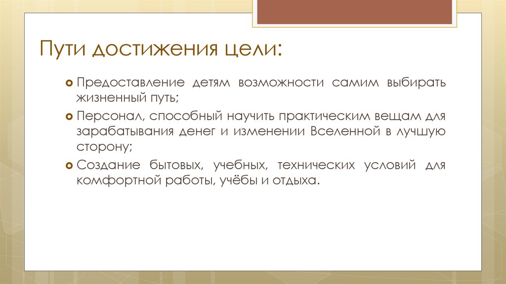 Пути достижения цели:Предоставление