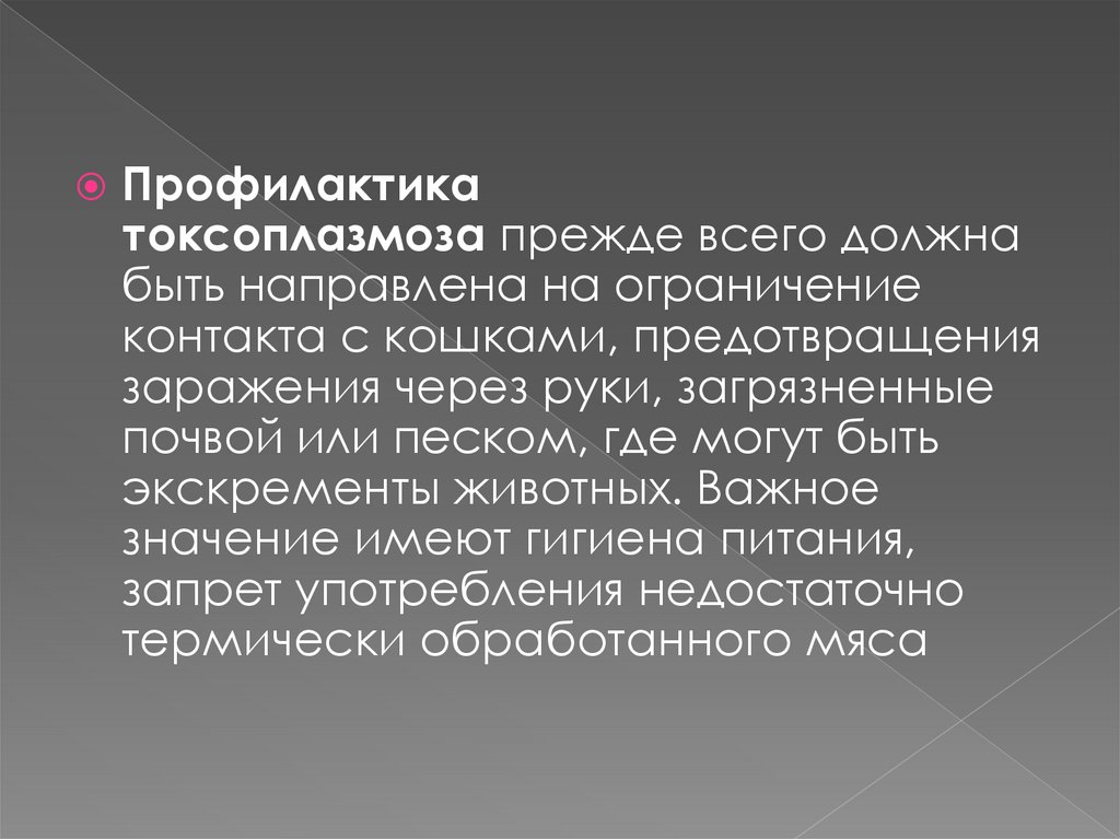 Профилактикатоксоплазмоза прежде всего должна