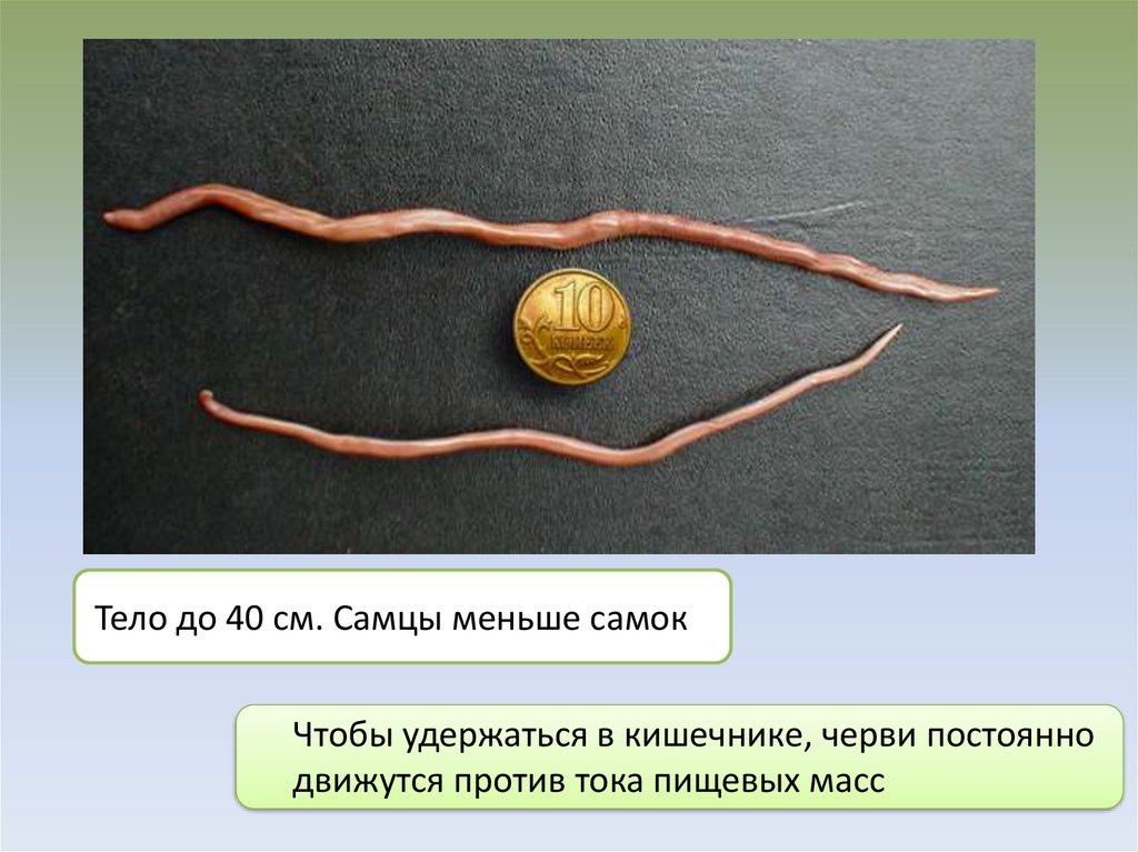Тело до 40 см. Самцы меньше самокЧтобы удержаться в кишечнике, черви постоянно