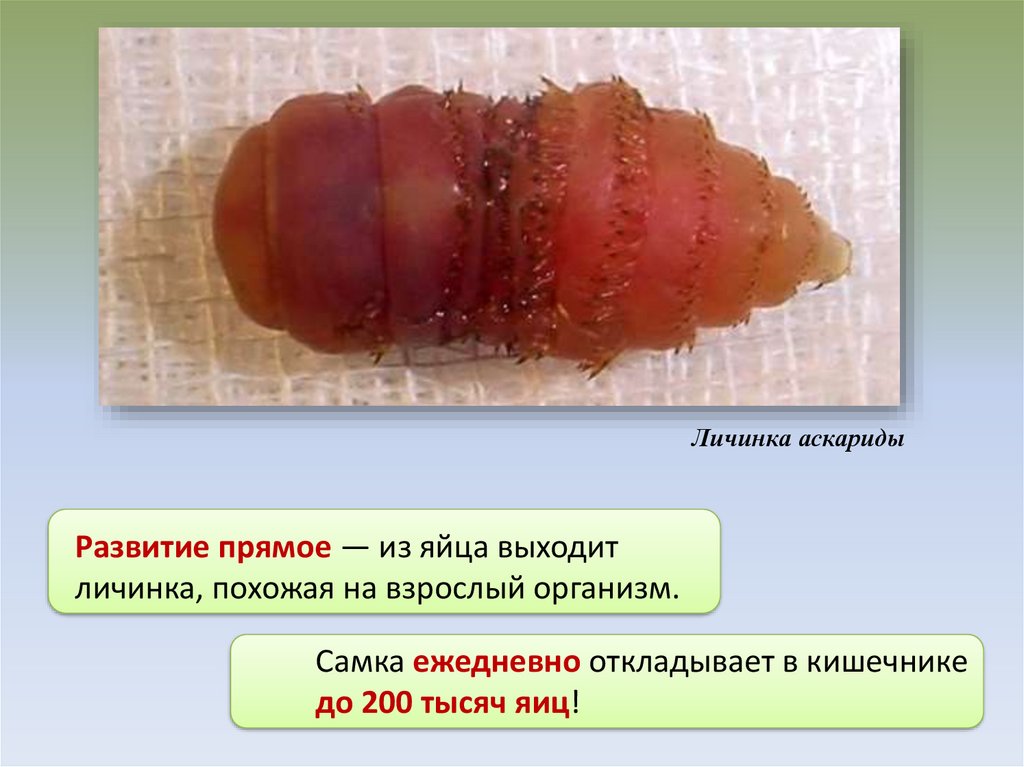 Личинка аскаридыРазвитие прямое — из яйца выходит