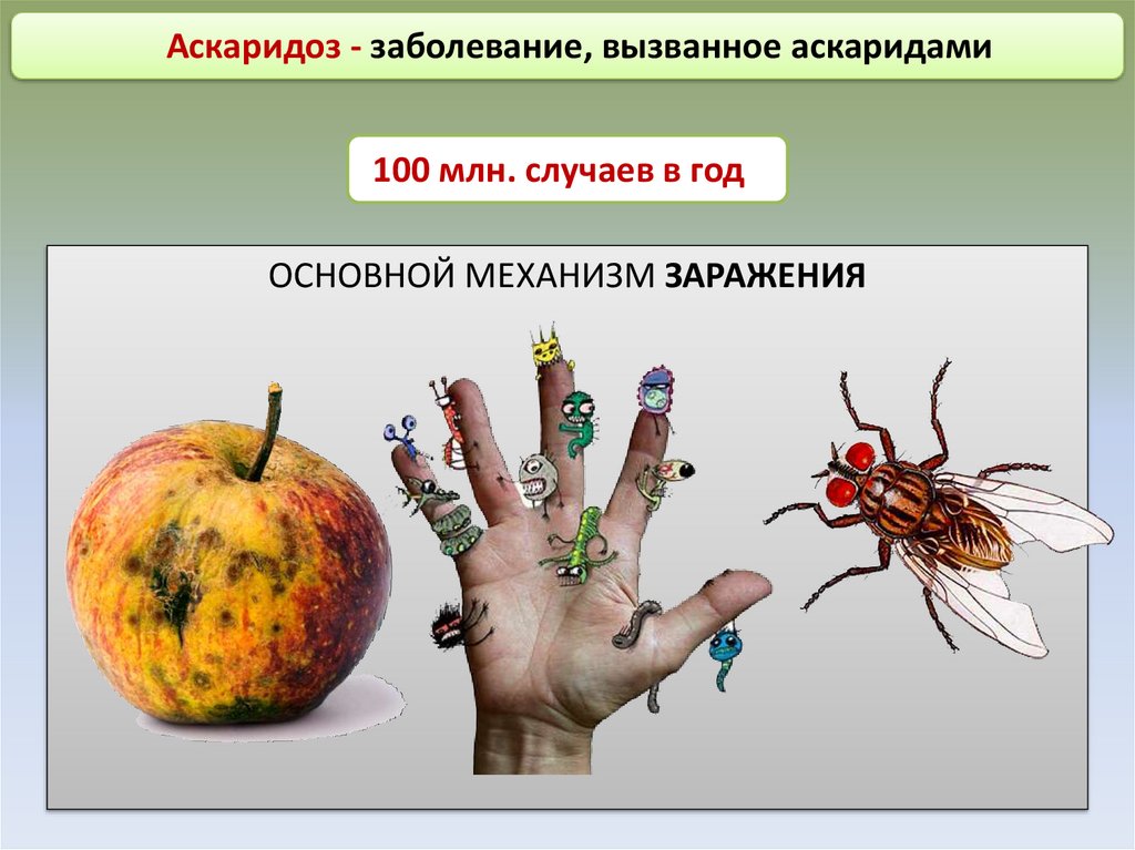 Аскаридоз - заболевание, вызванное аскаридами100 млн. случаев в год