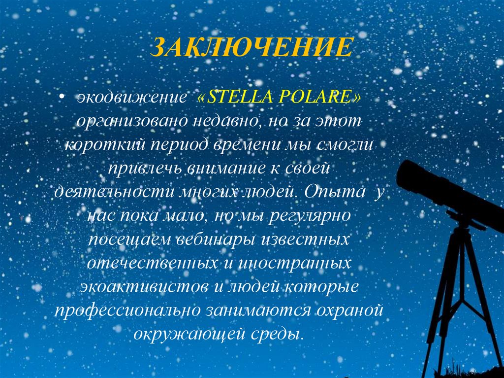 ЗАКЛЮЧЕНИЕ• экодвижение «STELLA POLARE»