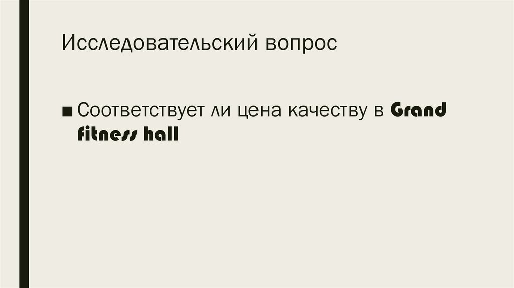 Research gaps:Соответствие цены и качества в фитнес-клубах.
