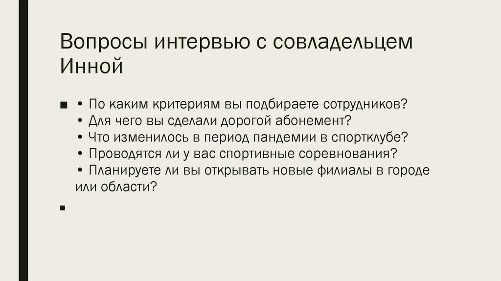Вопросы интервью с совладельцемИнной