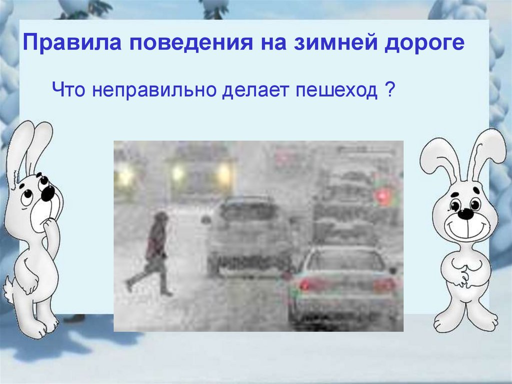 Правила поведения на зимней дорогеЧто неправильно делает пешеход ?