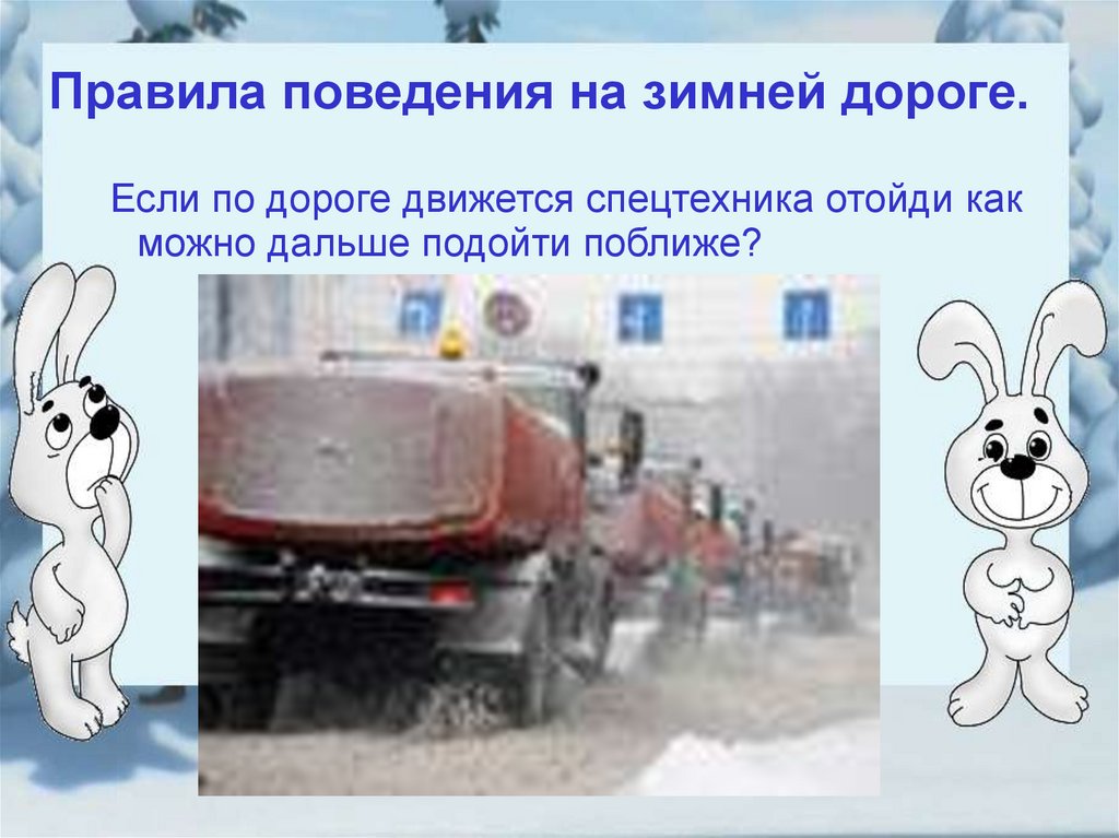 Правила поведения на зимней дороге.Если по дороге движется спецтехника отойди как