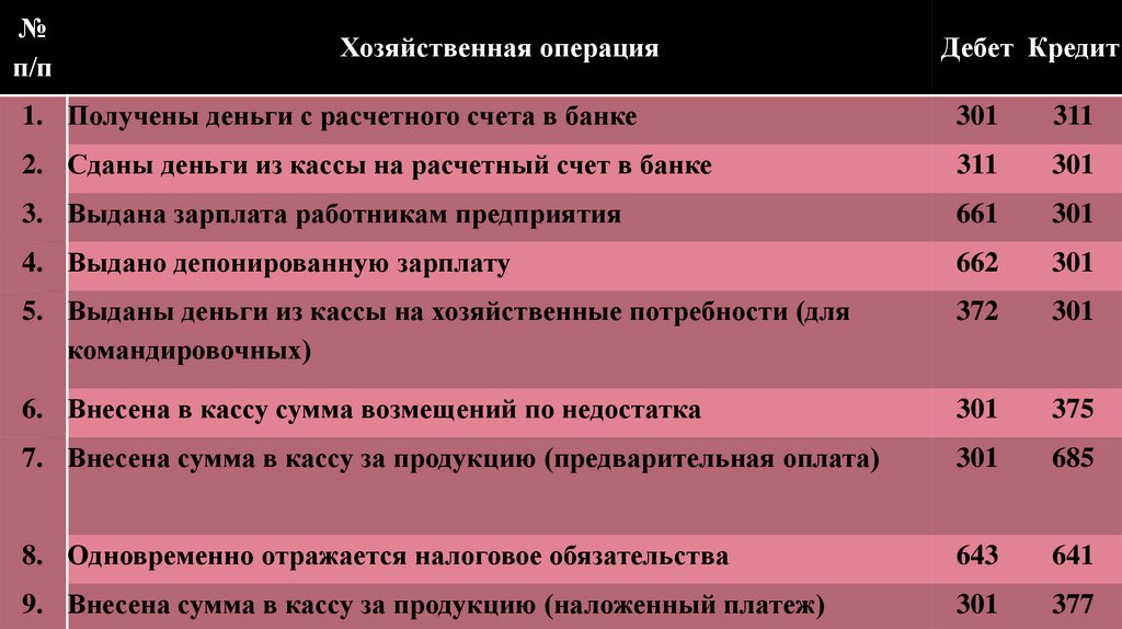 9. Внесена сумма в кассу за продукцию (наложенный платеж)