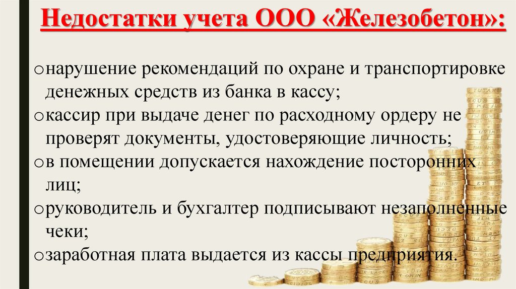 Недостатки учета ООО «Железобетон»:oнарушение рекомендаций по охране и транспортировке