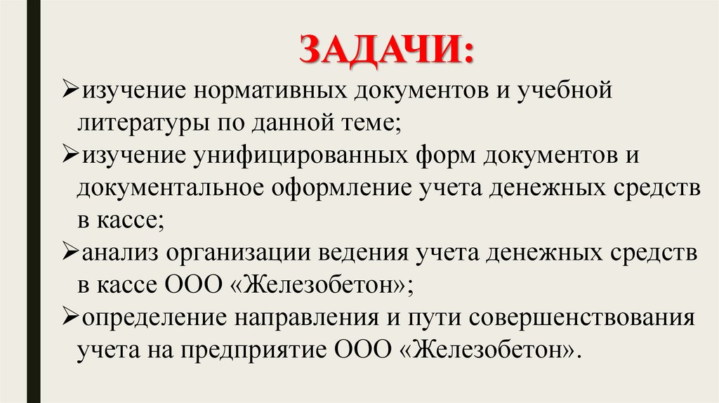 ЗАДАЧИ:изучение нормативных документов и учебной