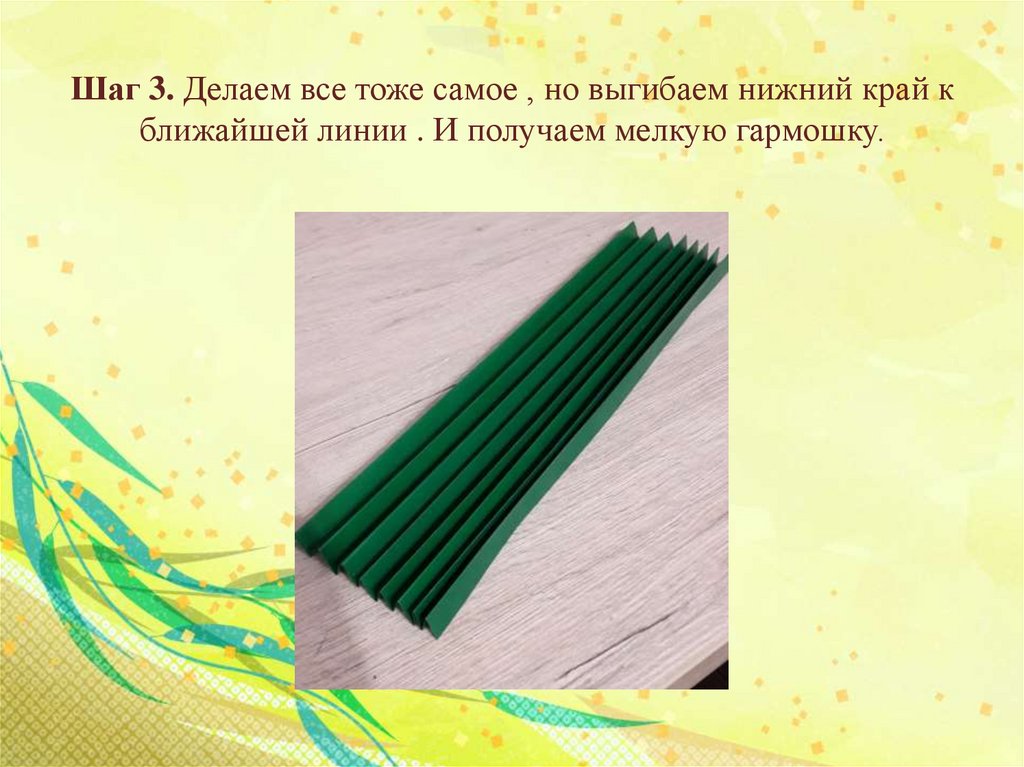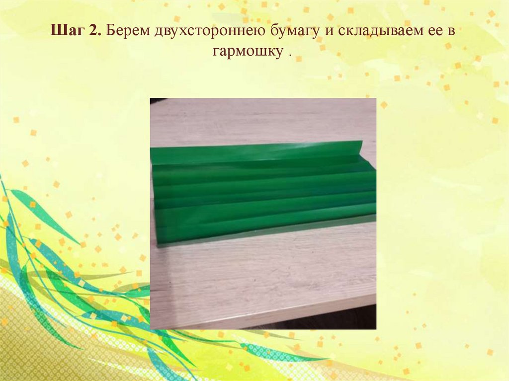 Шаг 2. Берем двухстороннею бумагу и складываем ее вгармошку .