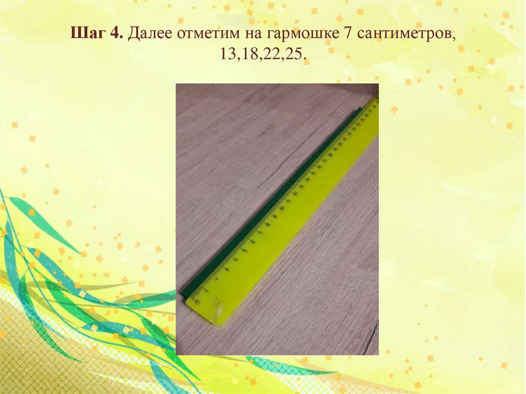 Шаг 4. Далее отметим на гармошке 7 сантиметров,13,18,22,25.