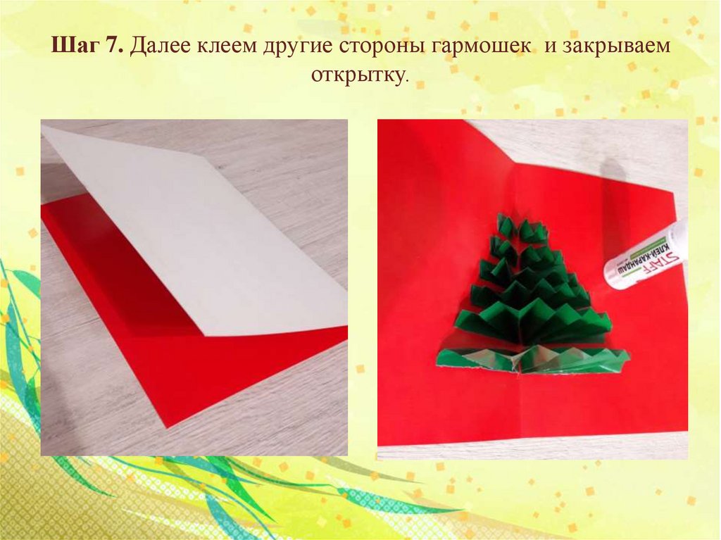 Шаг 7. Далее клеем другие стороны гармошек и закрываемоткрытку.