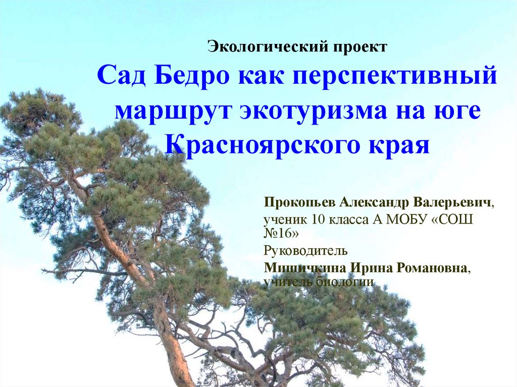 Сад Бедро как перспективный маршрут экотуризма на юге Красноярского края