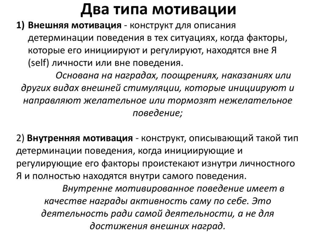 Два типа мотивации1) Внешняя мотивация - конструкт для описания