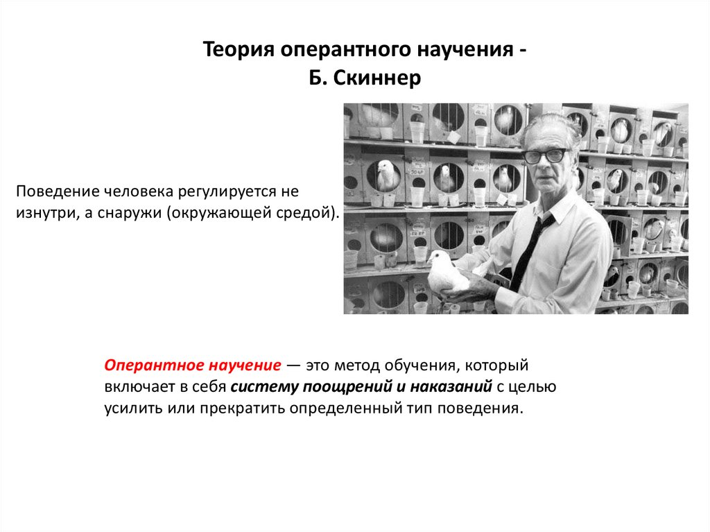 Теория оперантного научения Б. СкиннерПоведение человека регулируется не