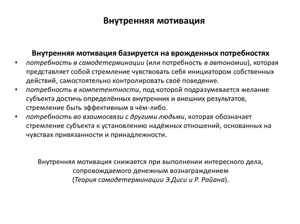 (Теория самодетерминации Э.Диси и Р. Райана).