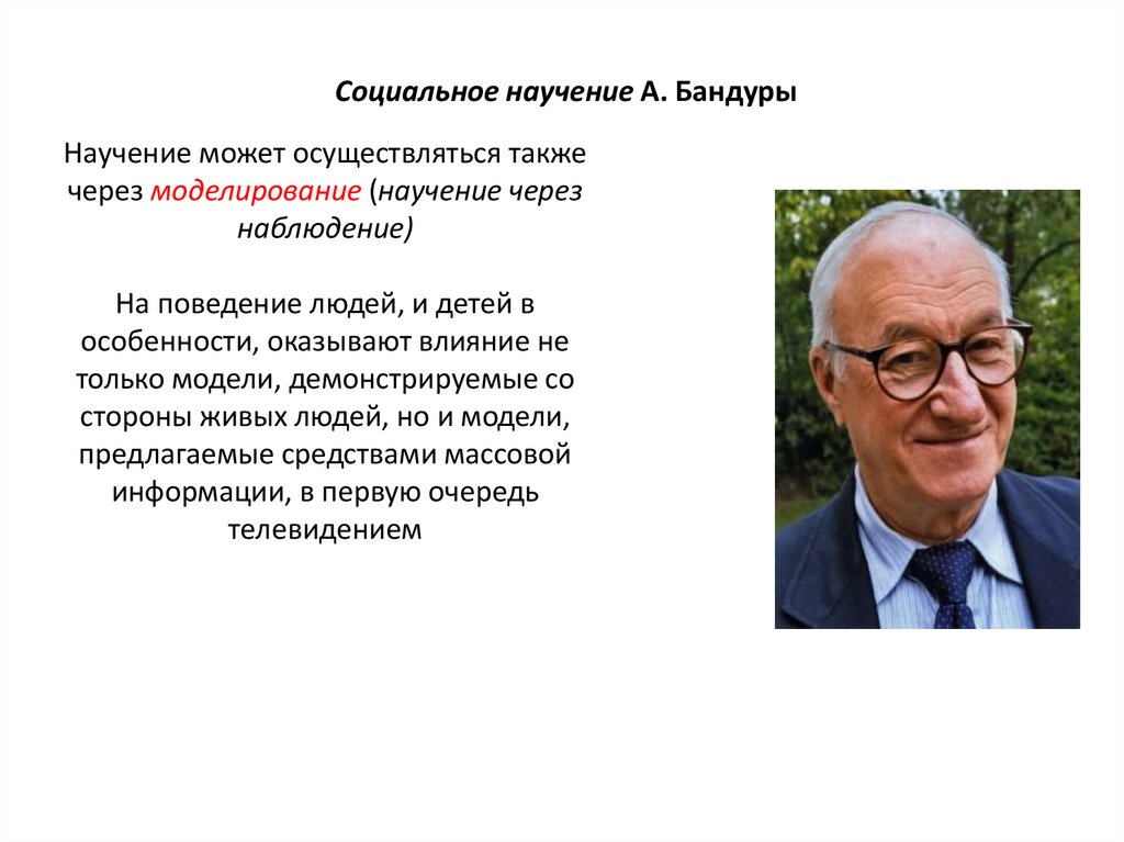Социальное научение А. БандурыНаучение может осуществляться также