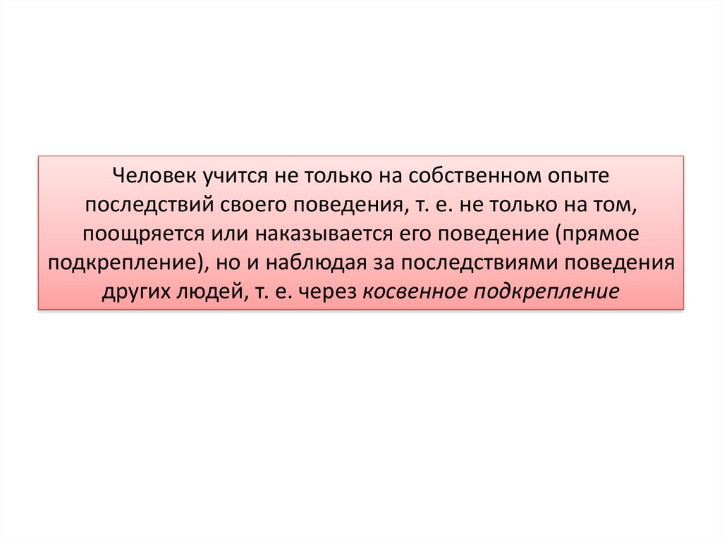 Человек учится не только на собственном опытепоследствий своего поведения, т. е. не только на том,