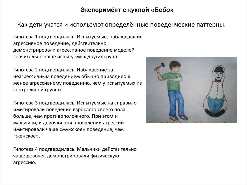 Экспериме́нт с куклой «Бобо»Как дети учатся и используют определённые поведенческие паттерны.