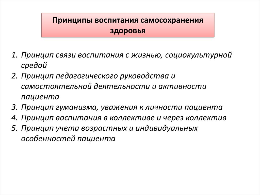 Принципы воспитания самосохраненияздоровья