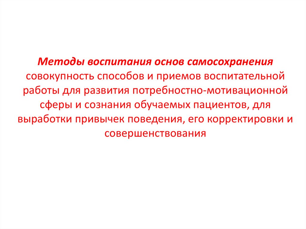 Методы воспитания основ самосохранениясовокупность способов и приемов воспитательной