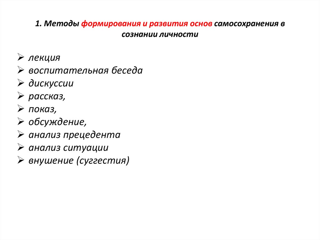 1. Методы формирования и развития основ самосохранения всознании личности
