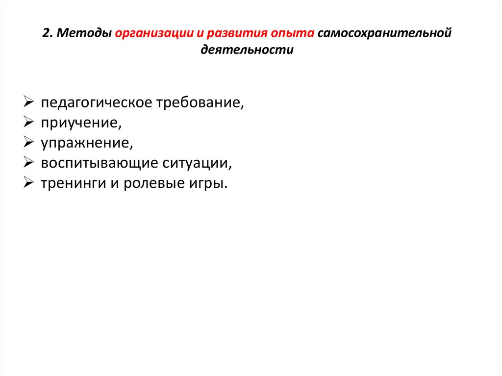 2. Методы организации и развития опыта самосохранительнойдеятельности