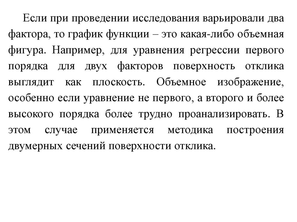 Анализ уравнений регрессии с помощью двумерныхсечений поверхностей отклика