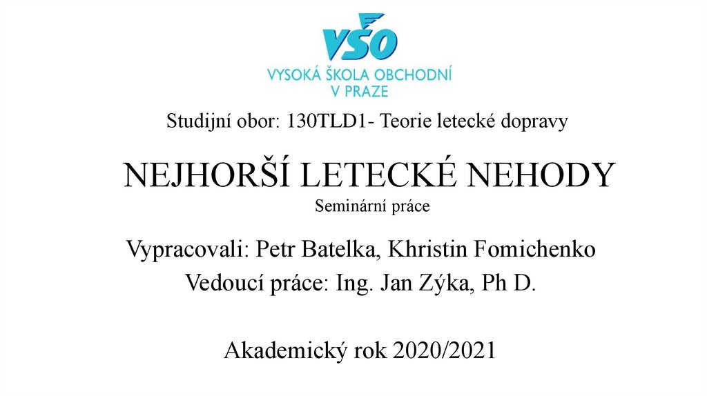 Studijní obor: 130TLD1- Teorie letecké dopravyNEJHORŠÍ LETECKÉ NEHODY