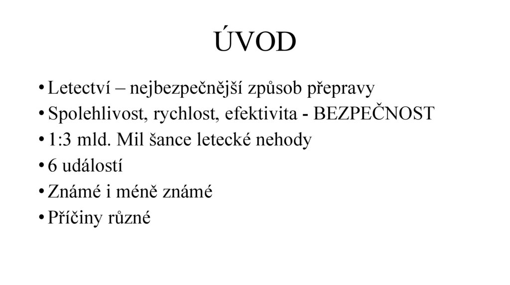 ÚVOD• Letectví – nejbezpečnější způsob přepravy
