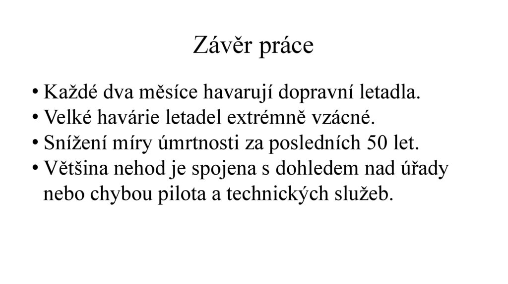 Závěr práce• Každé dva měsíce havarují dopravní letadla.