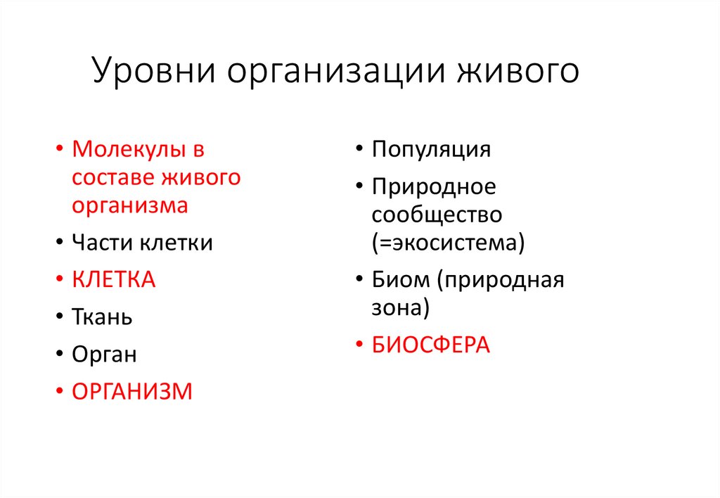 Уровни организации живого• Молекулы в