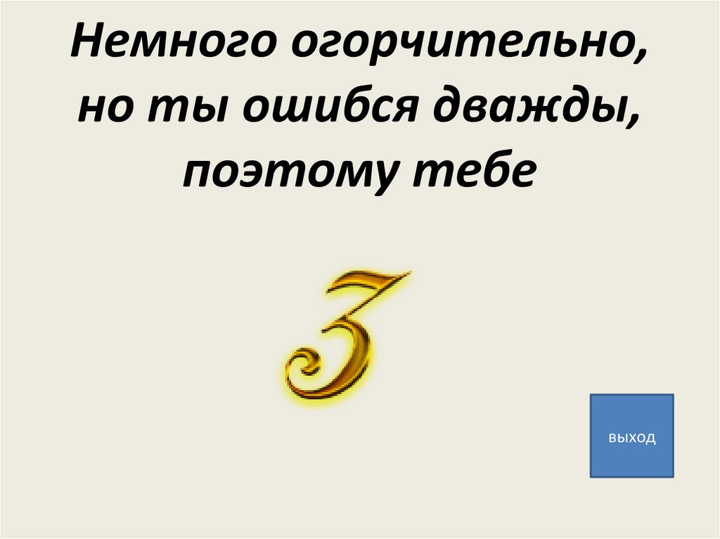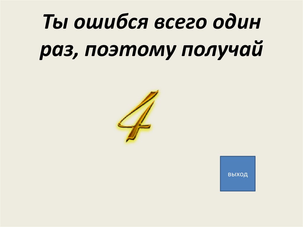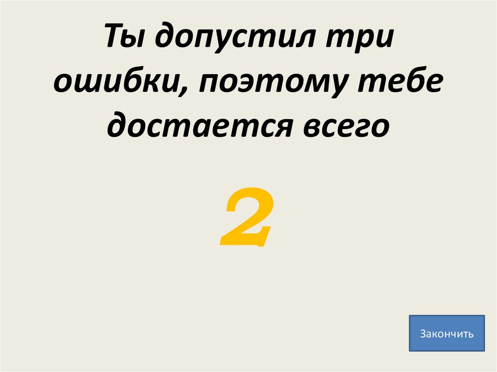 Ты ошибся всего одинраз, поэтому получай