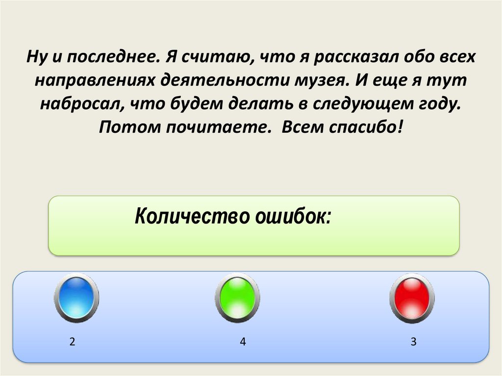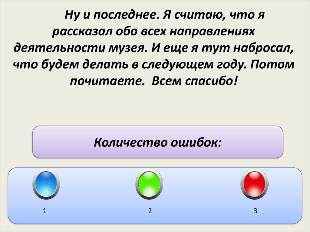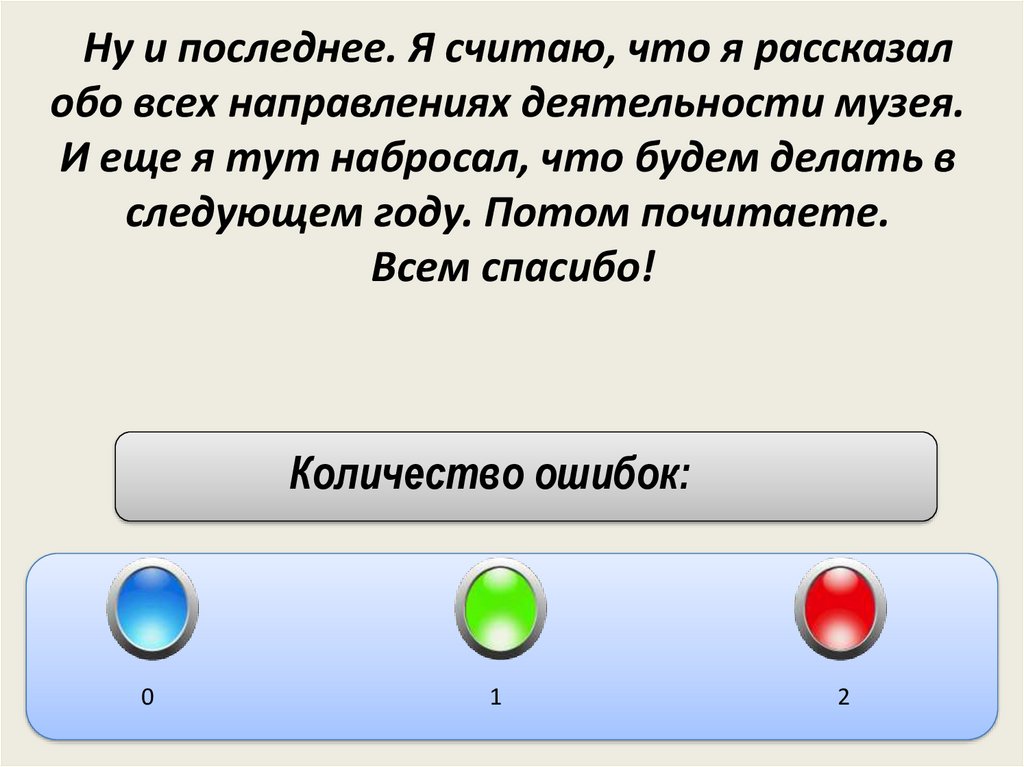 Ну и последнее. Я считаю, что я рассказалобо всех направлениях деятельности музея.