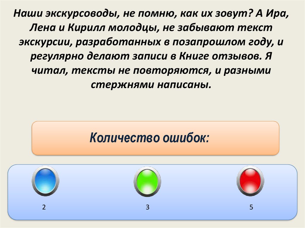 Наши экскурсоводы, не помню, как их зовут? А Ира,Лена и Кирилл молодцы, не забывают текст