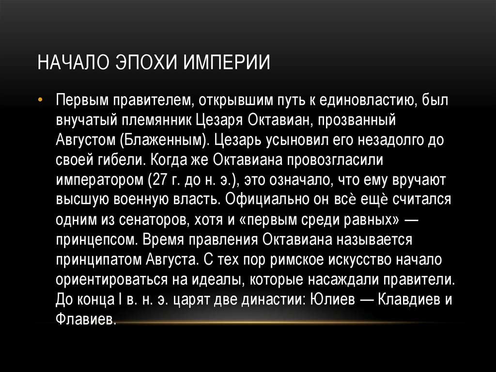 НАЧАЛО ЭПОХИ ИМПЕРИИ• Первым правителем, открывшим путь к единовластию, был