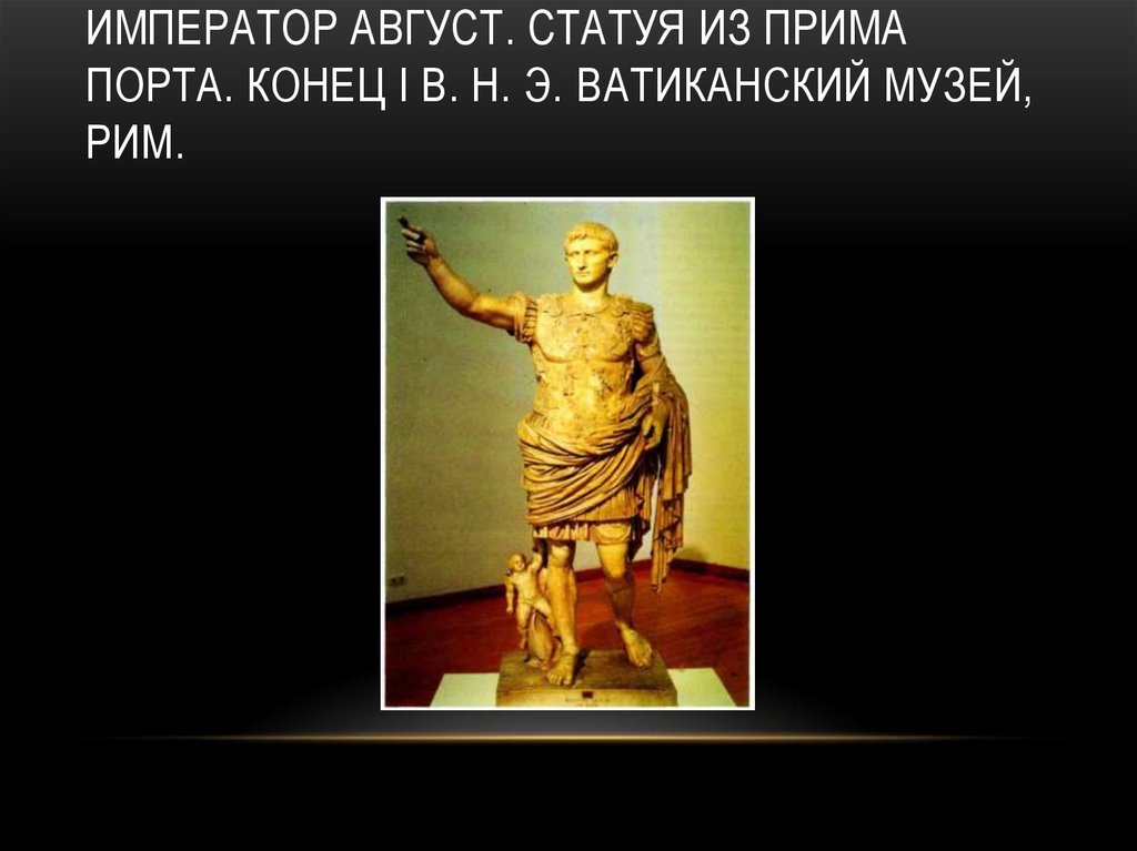 ИМПЕРАТОР АВГУСТ. СТАТУЯ ИЗ ПРИМАПОРТА. КОНЕЦ I В. Н. Э. ВАТИКАНСКИЙ МУЗЕЙ,
