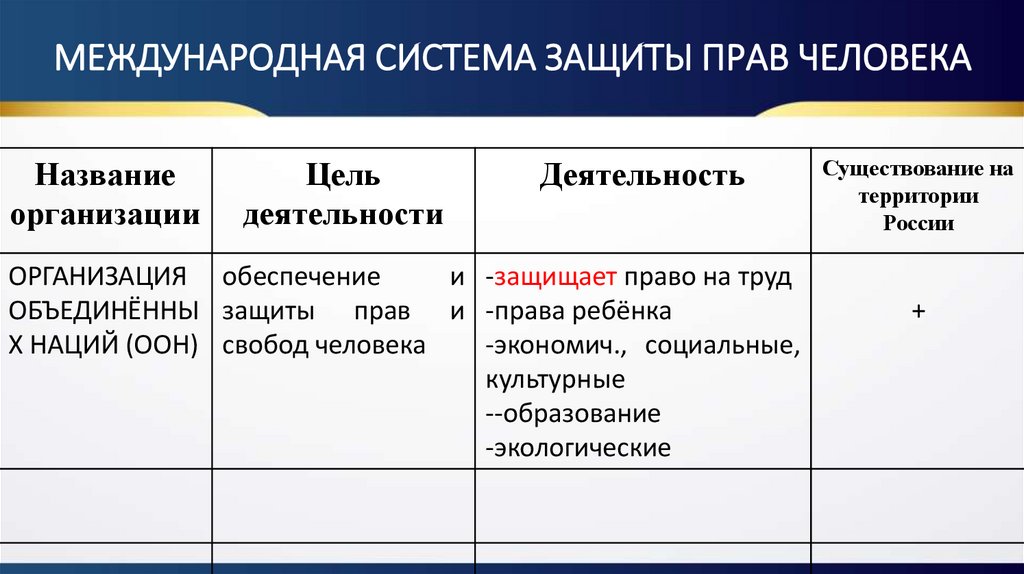 МЕЖДУНАРОДНАЯ СИСТЕМА ЗАЩИТЫ ПРАВ ЧЕЛОВЕКАНазвание