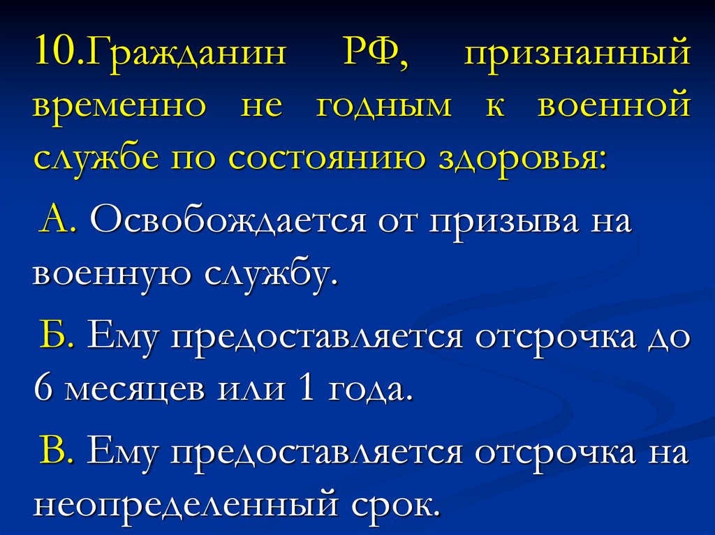10.Гражданин РФ, признанныйвременно не годным к военной