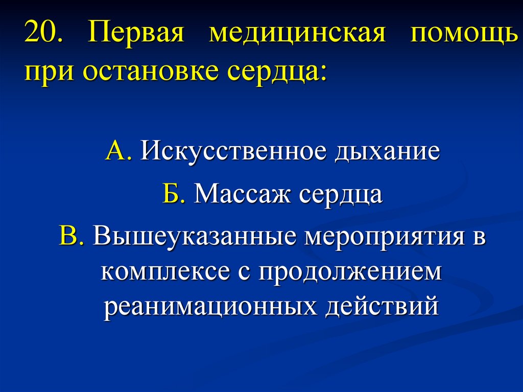 Условия оценки знаний:Ответ на все 20 вопросов – «отлично»