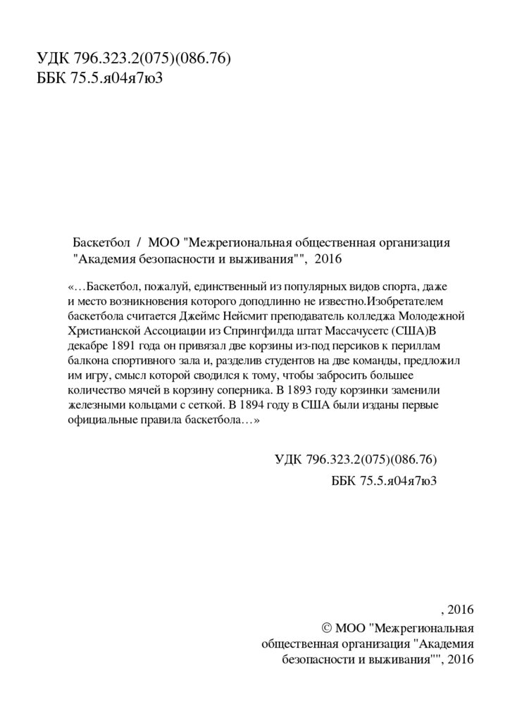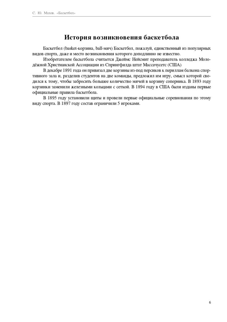 С. Ю. Махов. «Баскетбол»История возникновения баскетбола