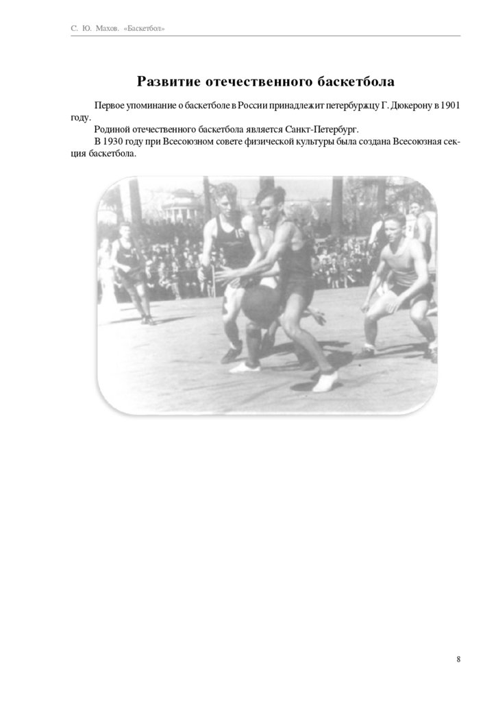 С. Ю. Махов. «Баскетбол»Развитие отечественного баскетбола