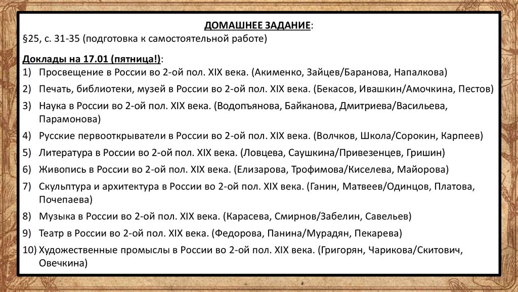 1) Просвещение в России во 2-ой пол. XIX века. (Акименко, Зайцев/Баранова, Напалкова)
