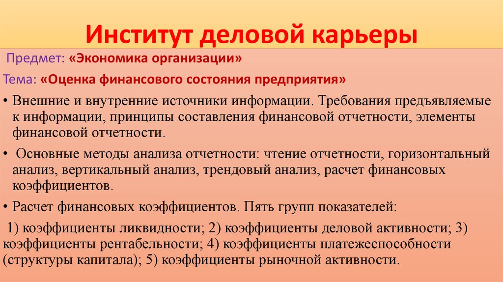 Институт деловой карьерыПредмет: «Экономика организации»
