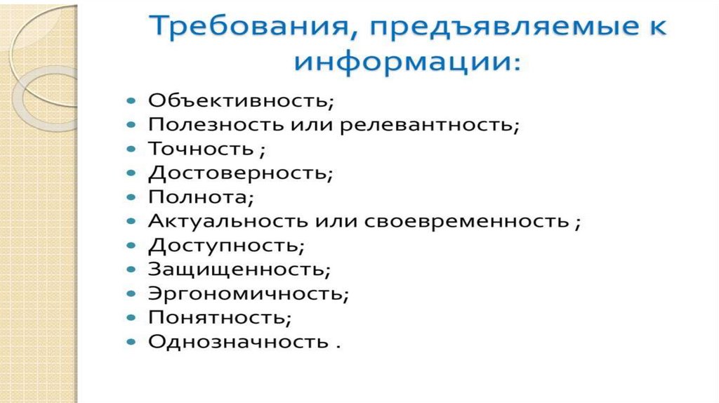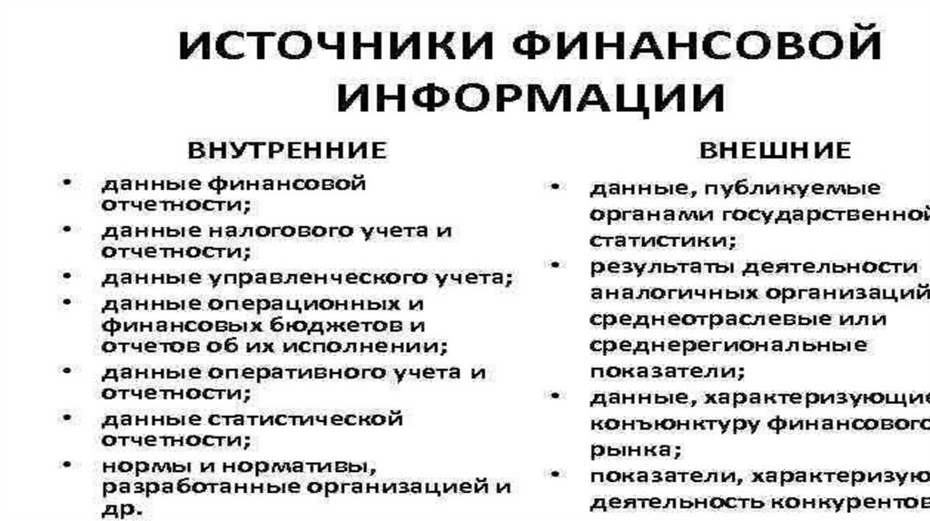 • Внешние и внутренние источники информации. Требования предъявляемые