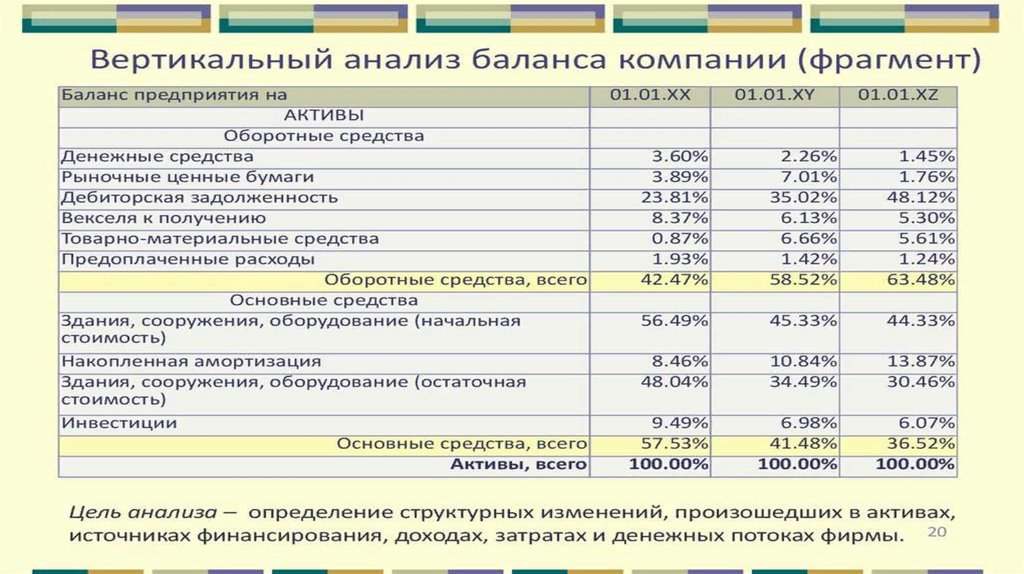 анализ, вертикальный анализ, трендовый анализ, расчет финансовых