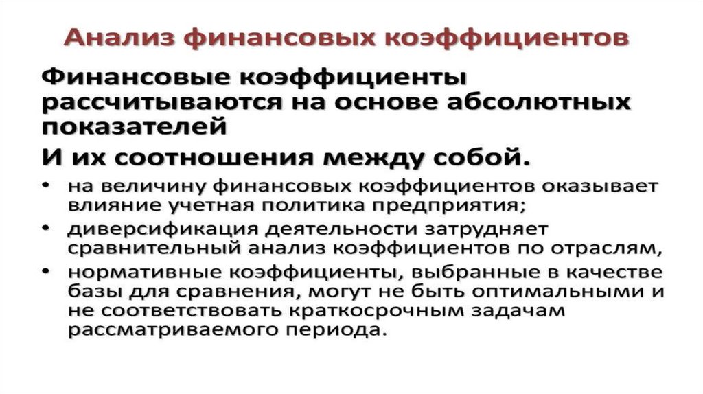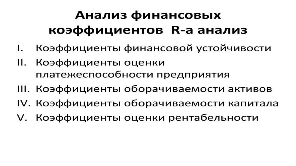 коэффициенты рентабельности; 4) коэффициенты платежеспособности
