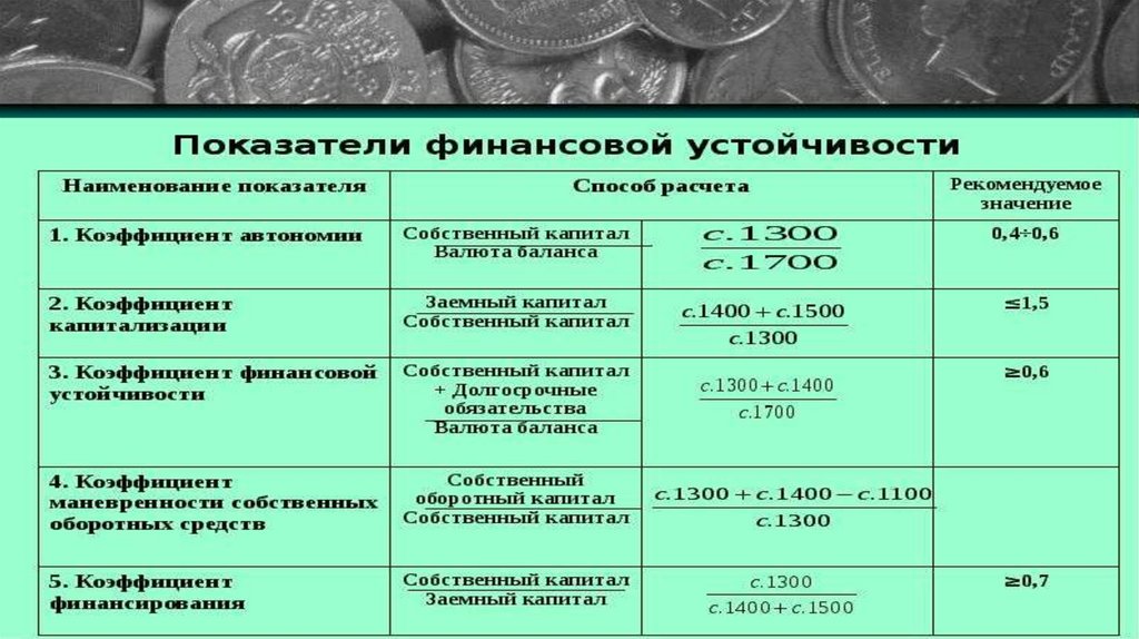 коэффициентов платежеспособности,