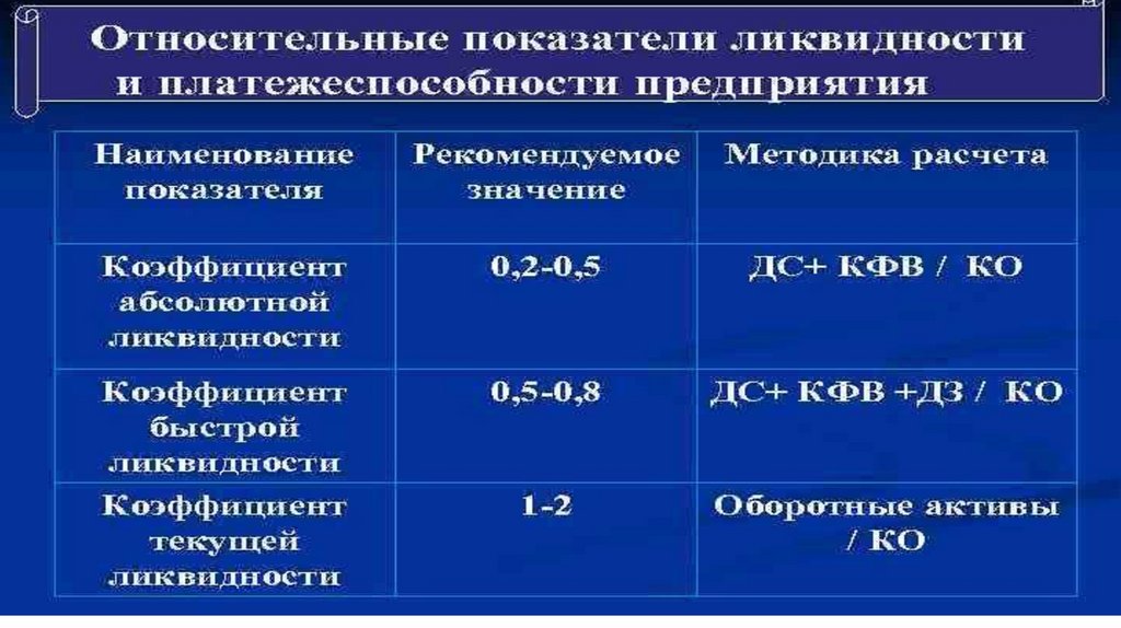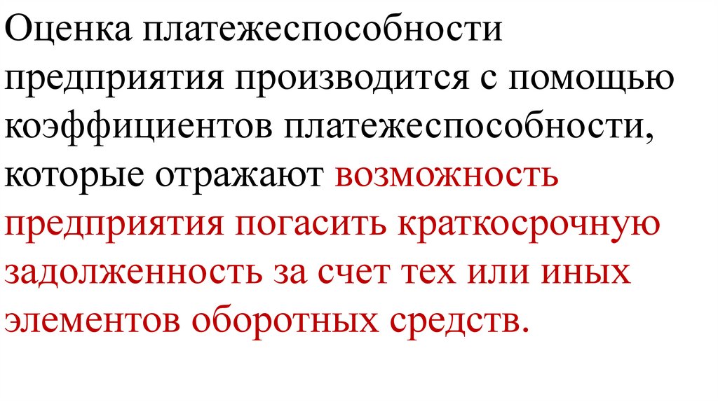 Оценка платежеспособностипредприятия производится с помощью